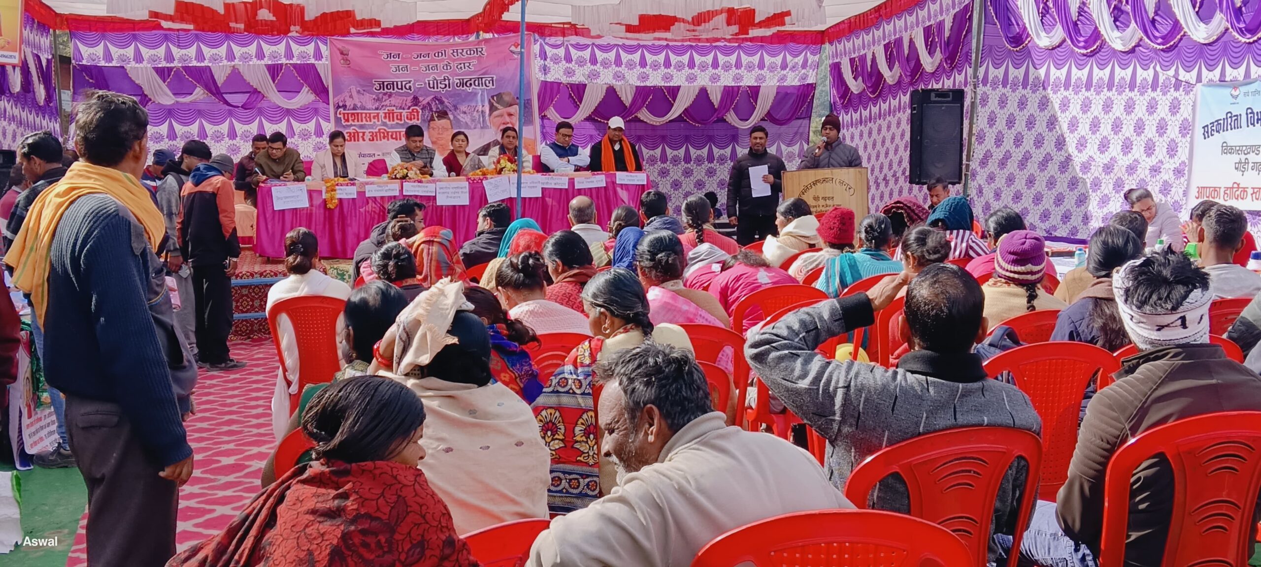 शिविर की अध्यक्षता कालागढ़ टाइगर रिजर्व लैंसडाउन की एसडीओ अनामिका सिंह ने की। उन्होंने कहा कि जन–जन की सरकार, जन–जन के द्वार अभियान से आमजन को उनके द्वार पर सरकारी सेवाएं उपलब्ध कराई जा रही है। शिविरों के माध्यम से विभिन्न विभागों द्वारा स्टॉल लगाकर पात्र लाभार्थियों को योजनाओं का त्वरित लाभ दिया जा रहा है। उन्होंने बताया कि शिविर में प्रमाण पत्र, दिव्यांग पेंशन, दिव्यांग उपकरण वितरण, पशुपालन योजनाओं का लाभ, स्वास्थ्य परीक्षण सहित कई सेवाएं मौके पर उपलब्ध कराई गयी।