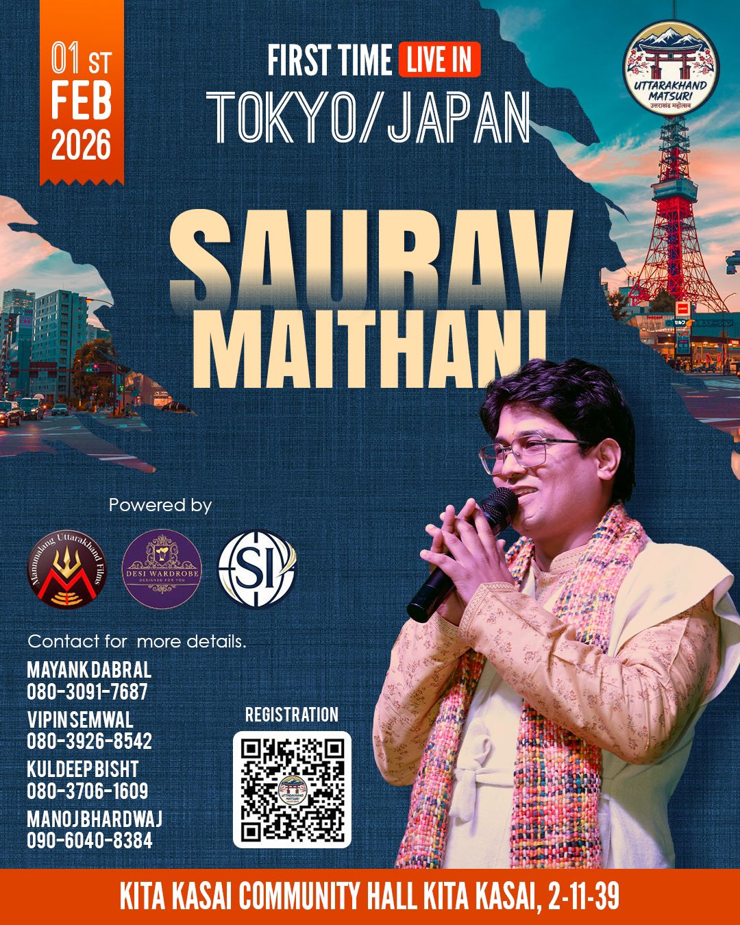 रुद्रप्रयाग, 28 जनवरी, 2026 उत्तराखंड की समृद्ध लोक संस्कृति एक बार फिर देश की सीमाओं को पार कर विश्वपटल पर अपनी पहचान बनाने जा रही है। आगामी 01 फरवरी 2026 को टोक्यो, जापान में प्रवासी उत्तराखंडियों द्वारा एक भव्य ’“उत्तराखंड मात्सुरी”’ कार्यक्रम का आयोजन किया जा रहा है, जिसमें उत्तराखंड के सुप्रसिद्ध लोकगायक सौरव मैठाणी अपनी सशक्त और भावनात्मक प्रस्तुति से लोकसंस्कृति के रंग बिखेरते नजर आएंगे।